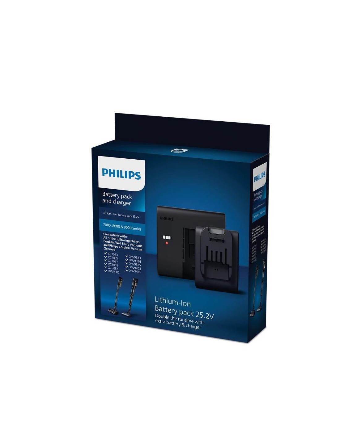 Lithium-ion battery 25.2VLithium-ion battery pack, 25.2 V, compatible with Philips cordless wet and dry vacuum cleaners and Philips cordless vacuum cleaners XC6552, XC6553, XC6557, XC7053, XC7055, XC7057, XC8053, XC8054, XC8055, XC8057, XW9383, XW9385, XW9463 and XW9465.