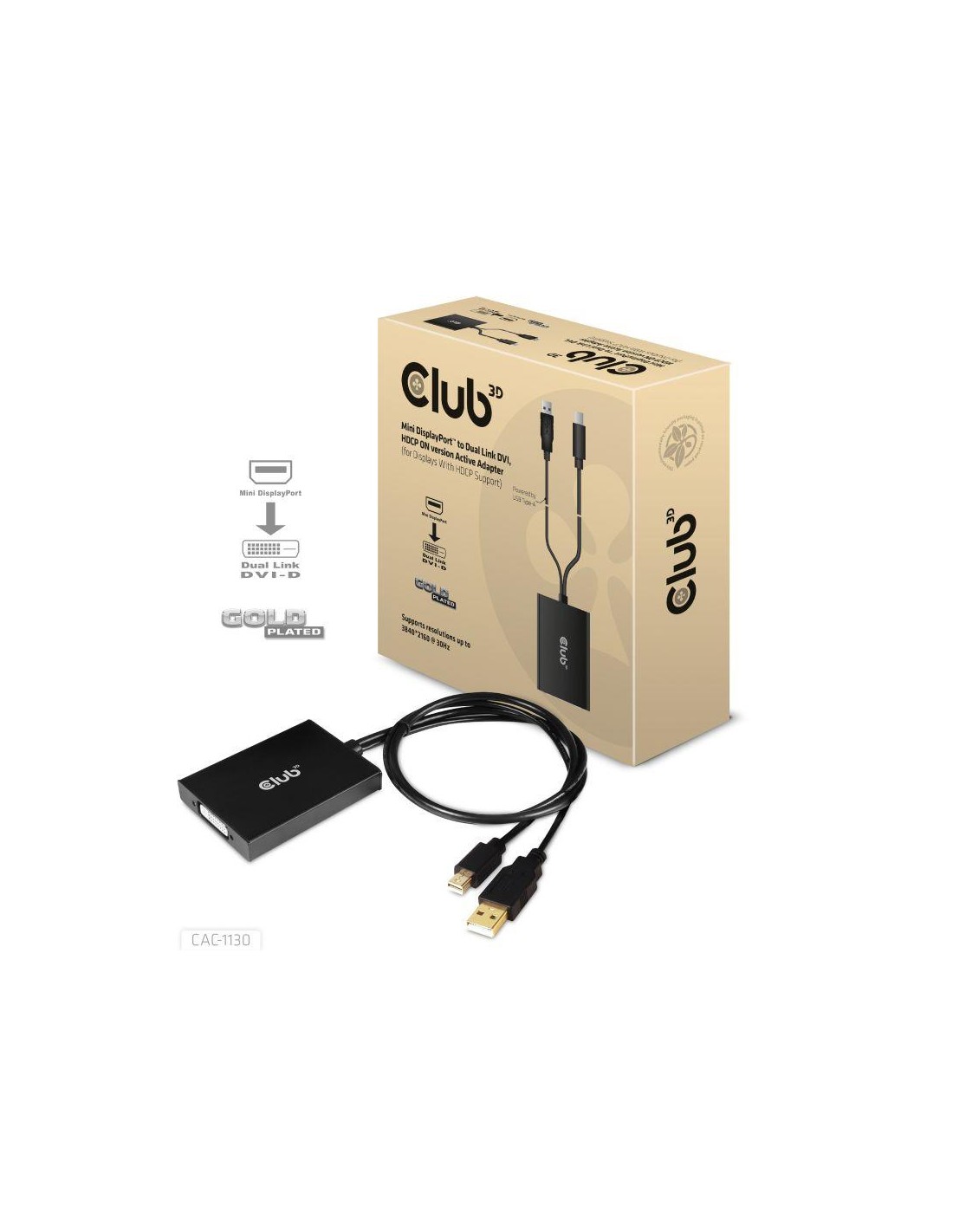 The Club 3D CAC-1130 Mini DisplayPort™ to Dual Link DVI, HDCP ON version Active Adapter(for Displays With HDCP Support). Seamlessly connect Mini DisplayPort™ based source to conventional DVI displays, such as CRT, LCD monitors and projectors, who do support HDCP. You can enjoy the ultimate widescreen canvas with a resolution of 2560 x 1440 @ 60Hz and up to 3840 x 2160 @ 30Hz on any other HDCP ON capable display.