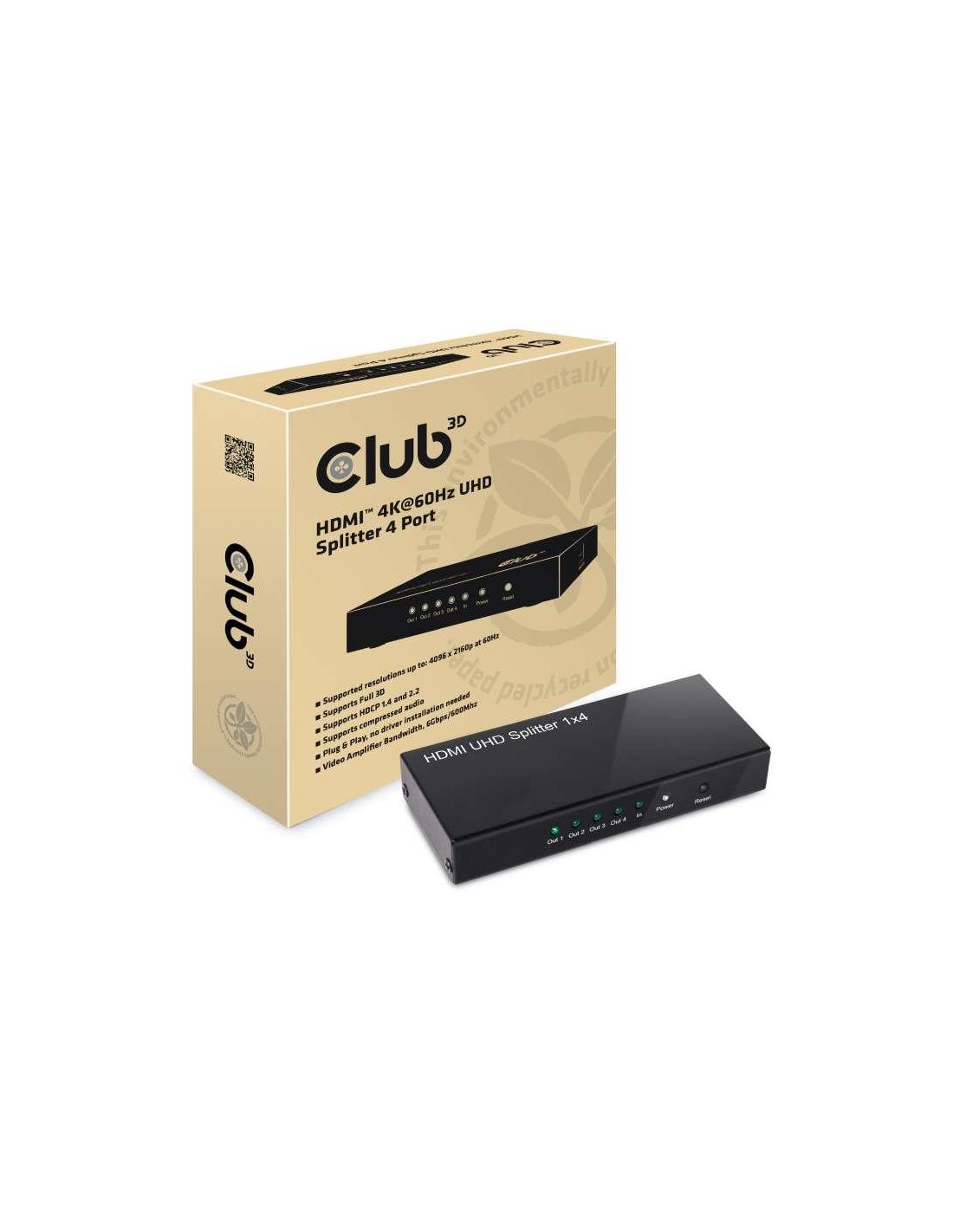 The Club 3D CSV-1380 HDMI™ 4K@60Hz UHD Splitter 4 Ports is a high- performance and small-sized HDMI™ 4K@60Hz UHD Splitter with one input and four outputs. It has a mat black metal casing, which make it very strong and sturdy. An ideal assistant both at home and in the workplace.