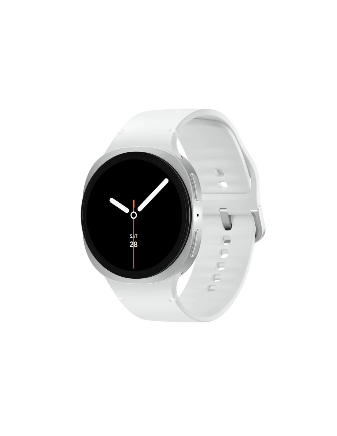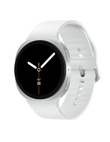 GALAXY WATCH8 | Screen 1.47" | Resolution 480 x 480 | Wireless connections WLAN/Bluetooth/LTE/NFC | Memory 32GB | GPS | Colour Silver | Battery capacity 435 mAh | Operating System Wear OS | Dimensions 4.6 x 4.37 x 0.86 cm | Weight 0.113 kg