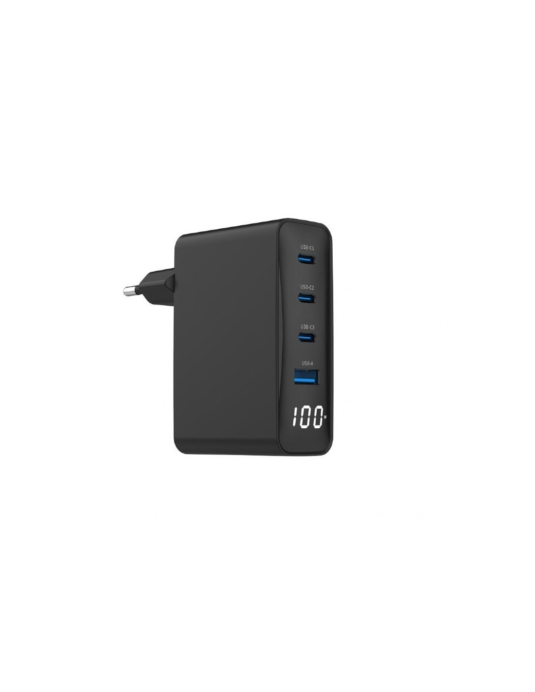 4-port 100W GaN USB fast charger, LCD, black