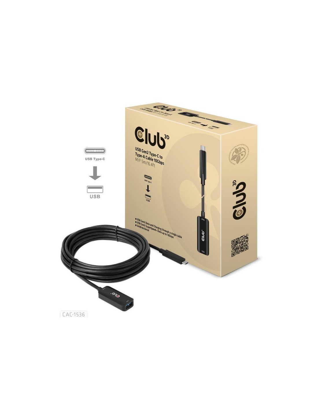 The Club 3D CAC-1536 USB Gen2 Type-C to Type-A Cable 10Gbps M/F 5m/16.4ft cable connects your Notebook, Tablet or Phone with USB Type-C output to your favorite existing Peripherals, Accessories and Chargers featuring the common USB Type-A plug. It enables Data and Power over a single cable. This cable supports USB 3.2 Gen 2. SuperSpeed+ data up to 10Gbps and up to 900mA output for Downstream charging or powering your USB Type-A enabled Notebook, Tablet or Smartphone.