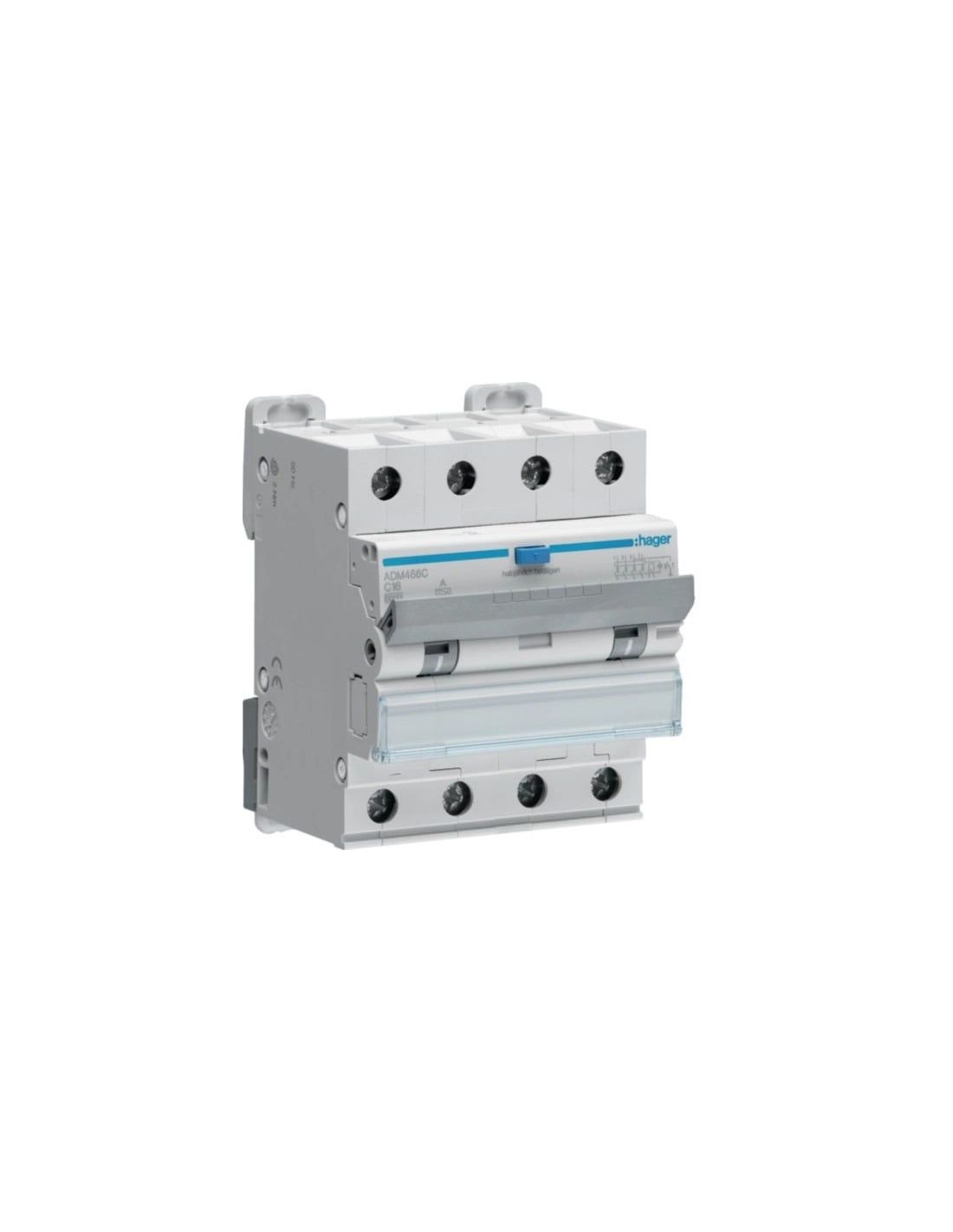 Srovės nuotėkio relė su automatiniu jungikliu Hager ADM466C (4P, 16A, C, A tipo, 30mA, 6kA)
