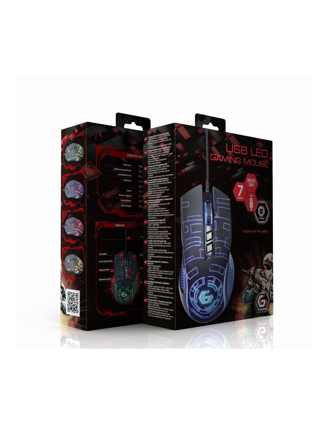 - Gembird MUSG-RGB-01. Form factor: Right-hand. Device interface: USB Type-A, Movement resolution: 3600 DPI, Buttons type: Pressed buttons, Buttons quantity: 7, Scroll type: Ring. Power source: Cable. Product colour: Black