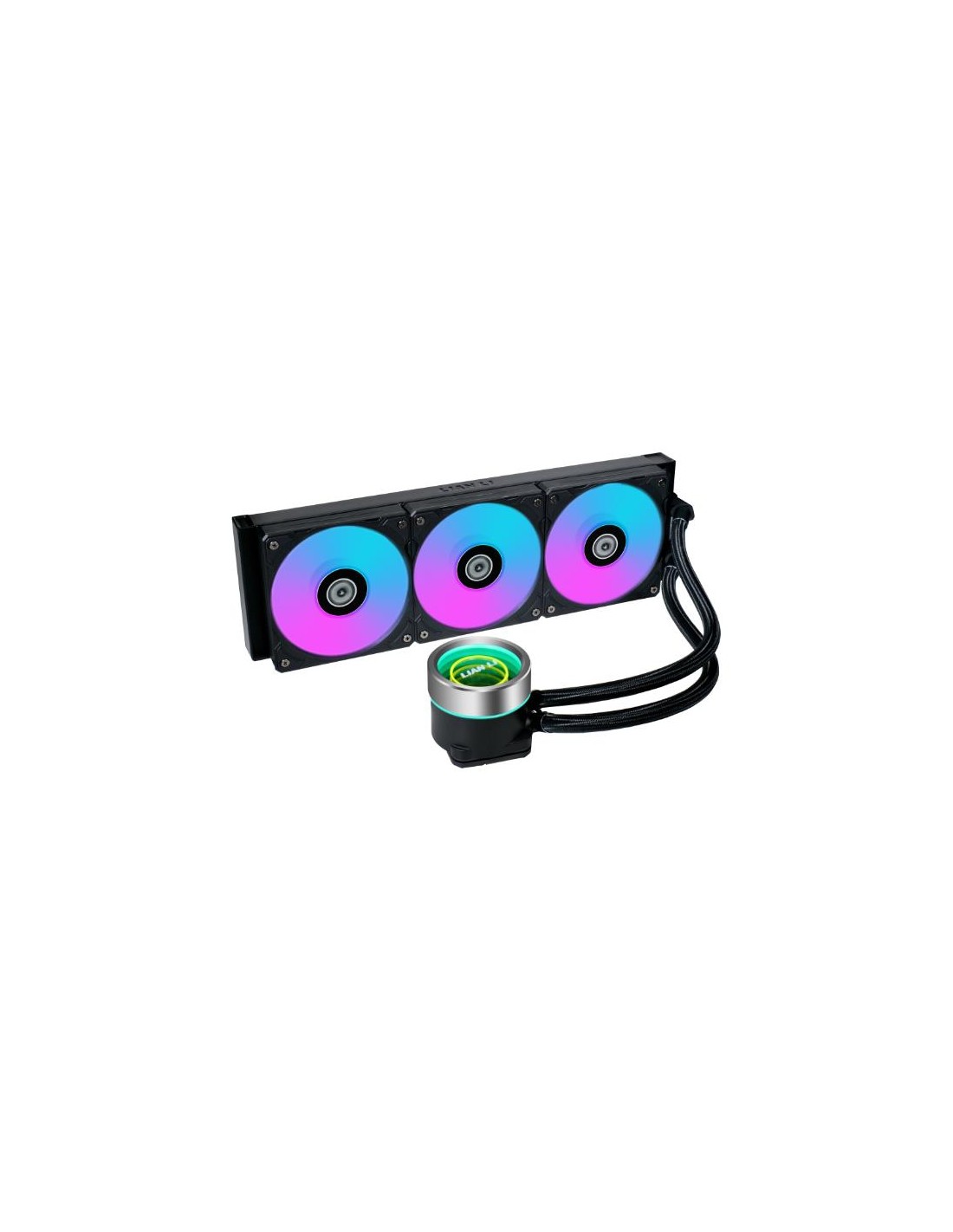 GA II Trinity 360, GA2T36B BLACK | Liquid | LGA1200/LGA1700/SAM4/SAM5 | Fan speed 300~2450 RPM | Air flow 79.9 cfm | Fan light | Noise level, max 30 dB | Dimensions RADIATOR 397.5mm x 119.2mm x 27mm; PUMP 74 mm x 74mm x 69mm; FAN 120 x 120 x 25mm | Colour Black | Weight 1.5 kg